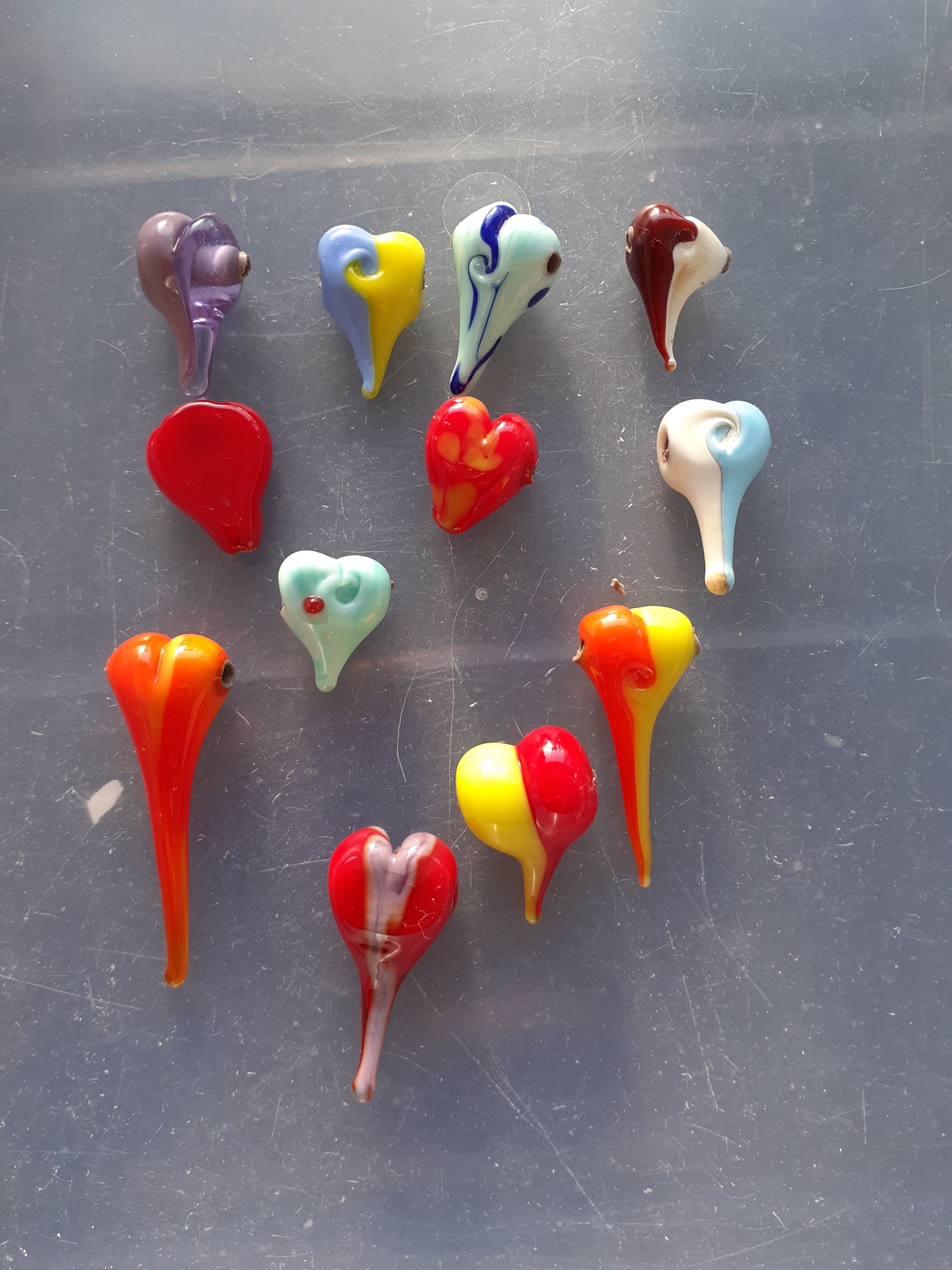 I am working in my studio – fortunately in the garden so I’m allowed to do that. I’m working on hearts in many forms. I’ll post more photos when I have some completed work.
