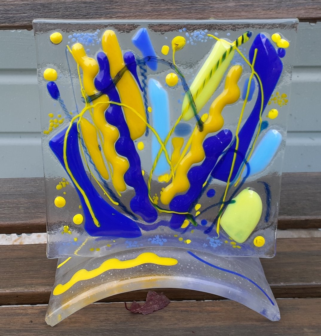 Choose from coasters, a dish or a decorated free-standing wave or your very own soap dish / hand gel dish. Leave the glass with me to go through the kiln and we arrange a collection or postal date (p&p extra)