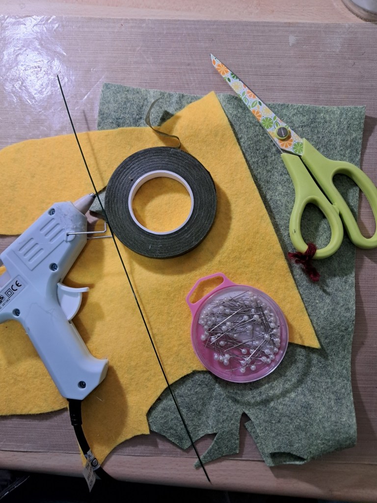 I will supply all of the tools you need but if you have a hot glue gun and favourite scissors suitable for cutting felt then please bring them along.