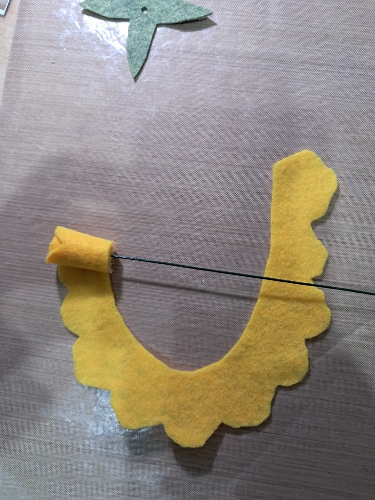 You will cut three rosebuds and three green calixes (green bases) from felt using the patterns provided. They are then glued together – I will demonstrate the process – and then you have a choice of binding them together with floral tape to make a trio or keeping them separate for your own arrangement.