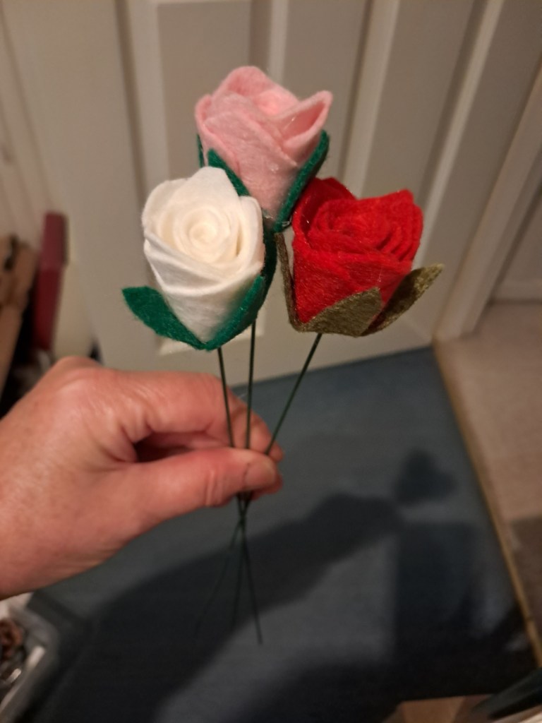 Felt Flower Rosebuds: make 3 rosebuds in felt which can be bound together or kept separately. For a group of between 6 and 10 participants.